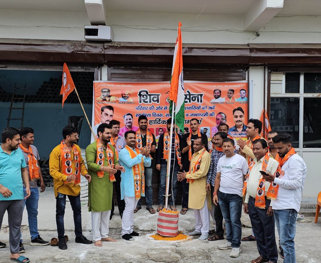 देहरादून, शिव सेना ने स्वंतत्रता दिवस की 78वीं वर्षगांठ के अवसर पर शिवसेना जिला प्रमुख कुलभूषण राणा जी के नेतृत्व में ध्वजारोहण कार्यक्रम आयोजित किया गया इसके उपरांत देश को आजादी दिलाने में अहम भूमिका निभाते हुए अपने प्राणों की आहुति देने वाले सभी स्वतंत्रता सेनानियों और शहिदो को नमन करते हुए नम आंखों से 2 मिनट का मौन धारण किया गया तदपश्चात उद्घघोष करके सभी शिव सेनिको ने स्वंतत्रता दिवस बड़े हर्षोउल्लास से मनाया गया जिसमे अरुण गुप्ता (प्रदेश कार्यकारिणी सदस्य), वैभव सिंह हैहयवंशी (जिला उप प्रमुख), नितिन रावत जी (जिला सचिव), जितेंद्र राघव जी (जिला मीडिया सचिव), आशीष टम्टा (जिला कार्यालय सचिव) मोहित मिश्रा (58 वार्ड प्रमुख), हंसराज यादव (जिला कार्यकारिणी सदस्य), मोहित डंगवाल , कमल शर्मा , अतुल कुमार एवं अन्य सभी शिव सैनिकों ने अपनी सहभागिता सुनिश्चित कराकर लड्डूओं का वितरण कियाउसके बाद जलपान करके सभा के विराम की घोषणा की गई
