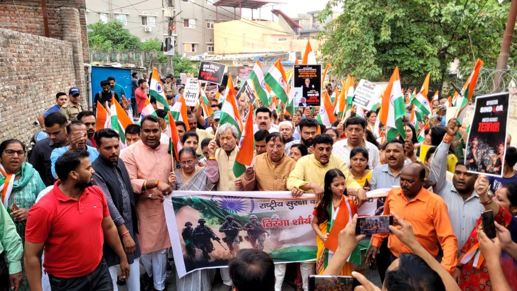 देहरादून, उत्तराखंड कैंट विधानसभा के सरदार पटेल मंडल (अध्यक्ष आशीष शर्मा) एवं राजपुर विधानसभा के अंबेडकर मंडल (अध्यक्ष पंकज शर्मा) के नेतृत्व में “तिरंगा शौर्य सम्मान यात्रा” का भव्य आयोजन किया गया। यह यात्रा कैंट विधानसभा की माननीय विधायक सविता कपूर जी तथा राजपुर विधानसभा के माननीय विधायक खजान दास जी के मार्गदर्शन में आयोजित की गई।यह जनयात्रा ऑपरेशन सिंदूर की सफलता के उपलक्ष्य में वीर सैनिकों के अद्वितीय शौर्य व बलिदान को नमन करते हुए आयोजित की गई, जिसमें भारी संख्या में कार्यकर्ताओं एवं नागरिकों ने तिरंगा हाथ में लेकर हिस्सा लिया और भारत माता की जयघोष से वातावरण गुंजायमान कर दिया। कार्यक्रम की गरिमामय उपस्थिति में रहे:माननीय पूर्व मुख्यमंत्री तीरथ सिंह रावत,राज्यसभा सांसद नरेश बंसल, महानगर अध्यक्ष सिद्धार्थ अग्रवाल जी,निवर्तमान मेयर सुनील उनियाल गामा अन्य प्रमुख नेतागण: हरीश डोरा, विशाल गुप्ता इत्यादियात्रा साधू राम जूनियर हाई स्कूल से प्रारंभ होकर कमला पैलेस चौक तक सम्पन्न हुई। इस अवसर पर यह स्पष्ट संदेश दिया गया कि भारत की सुरक्षा से खिलवाड़ करने वालों को करारा जवाब दिया जाएगा। विशेष रूप से इस अभियान में महिला सैन्य अधिकारियों की भूमिका प्रेरणादायक एवं सराहनीय रही — इन वीरांगनाओं को सादर नमन।उपस्थित गणमान्य व्यक्तियों में प्रमुख नाम:जोगेंद्र सिंह पुंडीर (प्रदेश अध्यक्ष, किसान मोर्चा), आदित्य चौहान (प्रदेश मंत्री, भाजपा), मनोज कंबोज, अजय सिंह (मंडल महामंत्री), रजनी देवी, बबीता गुप्ता, मिनाक्षी मौर्य, डॉली मोहन, ममता अग्रवाल (पार्षदगण), प्रदीप दुग्गल (महानगर अध्यक्ष, किसान मोर्चा), अनीता गर्ग, अंकुर जैन, अरुण खरबंदा, अंशिता शर्मा, विकास शर्मा, विजय मलिक, राहुल जुयाल आदि।