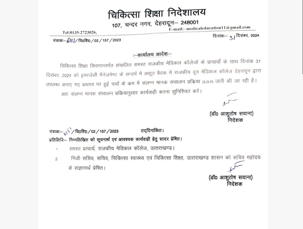 *उत्तराखंड में नये साल पर अलर्ट मोड़ पर रहेंगे सभी अस्पताल और मेडिकल कॉलेज, स्वास्थ्य विभाग ने जारी की एसओपी*