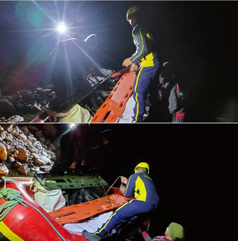 SDRF टीम द्वारा त्वरित कार्यवाही करते हुए तत्काल खाई में रोप द्वारा उतरकर उक्त आल्टो वाहन तक पहुँच बनायी, उक्त वाहन में सवार सभी सवारियों की मौके पर मृत्यु हो चुकी थी। SDRF टीम द्वारा स्थानीय पुलिस व राजस्व विभाग के साथ मिलकर सभी शवो को बॉडी बैग व स्ट्रेचर के माध्यम से वैकल्पिक मार्ग से होते हुऐ खाई से बाहर निकालकर मुख्य मार्ग तक पहुँचाया व अग्रिम कार्यवाही हेतु जिला पुलिस के सुपुर्द किया गया।