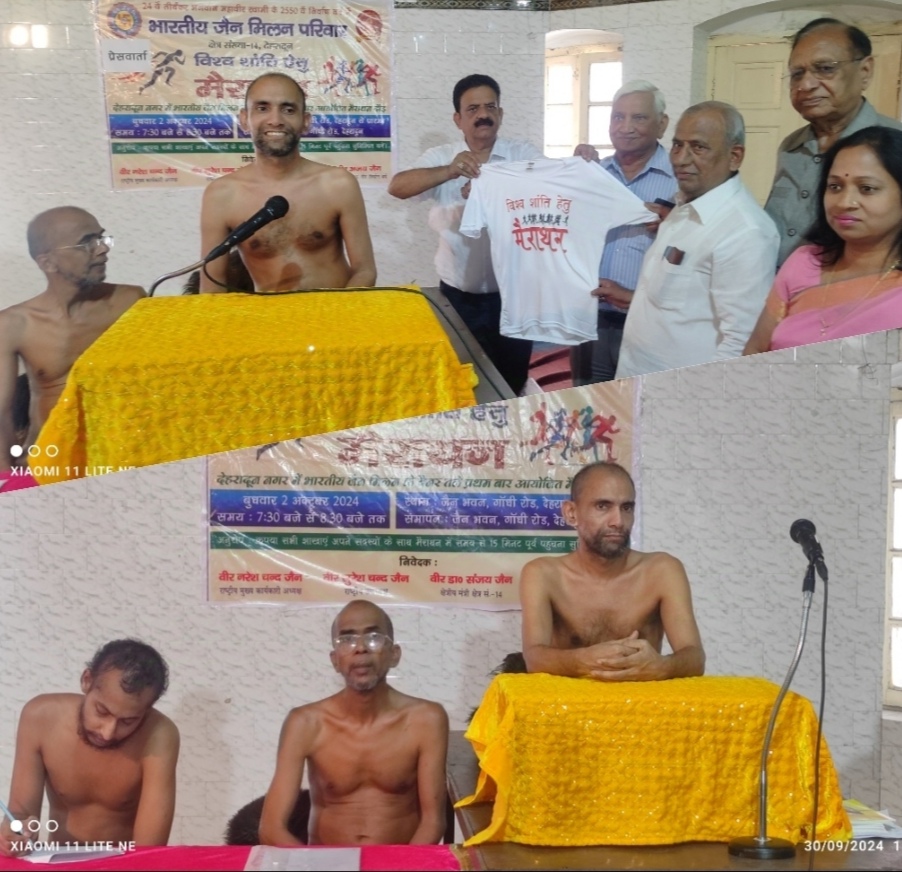 देहरादून, भगवान महावीर स्वामी के 2550 वे निर्वाण वर्ष के उपलक्ष में गांधी जयन्ती पर मैराथन शांति मार्च निकाला जायेगा, भगवान महावीर के संदेश जन जन तक पहुंचाने के उद्देश्य से इस उद्देश्य को लेकर भारतीय जैन मिलन क्षेत्र संख्या 14 द्वारा 108 मुनि उपाध्याय श्री विकसंत सागर जी मुनिराज जी के सानिध्य में जैन धर्मशाला में पत्रकार वार्ता का आयोजन किया गया।
