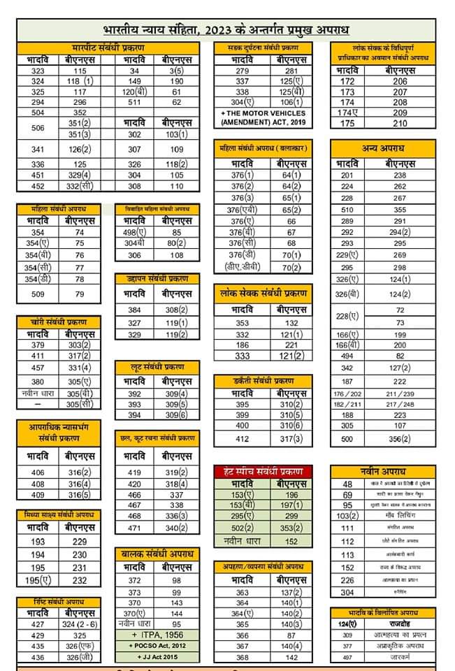 (1) भारतीय न्याय संहिता 2023(2) भारतीय नागरिक सुरक्षा संहिता 2023(3) भारतीय साक्ष्य अधिनियम 2023लागू होने वाले तीन नए आपराधिक कानून भारतीय न्याय संहिता, भारतीय नागरिक सुरक्षा संहिता एवं भारतीय साक्ष्य अधिनियम के संबंध में है ।पुलिस महानिदेशक उत्तराखंड ने बताया कि नए कानून पीड़ित को अधिक अधिकार प्रदान करने के साथ ही शीघ्र न्याय, आपराधिक न्याय विंग प्रणाली के सभी विंग को अधिक जवाबदेह बनाने पर जोर देता है। राज्य में नए कानूनों को लागू करने के लिए 6 कमेटियों का गठन किया गया है जिनमें जनशक्ति, प्रशिक्षण, इन्फ्रास्ट्रक्चर, सीसीटीएनएस, राज्य में लागू एक्ट में नये कानून के अन्तर्गत परिवर्तन व जागरूक समिति शामिल हैं।उन्होंने बताया कि कानून के गठन हेतु 18 राज्य, 6 केंद्र शासित प्रदेशों, सुप्रीम कोर्ट, 16 उच्च न्याययियों, 5 न्यायिक अकादमियों, 22 कानून विवि, 142 संसद सदस्यों, लगभग 270 विधायकों को जनता द्वारा दिये गए सुझावों के आधार पर 4 वर्ष में गहन परीक्षण कर इन्हें तैयार किया गया है।