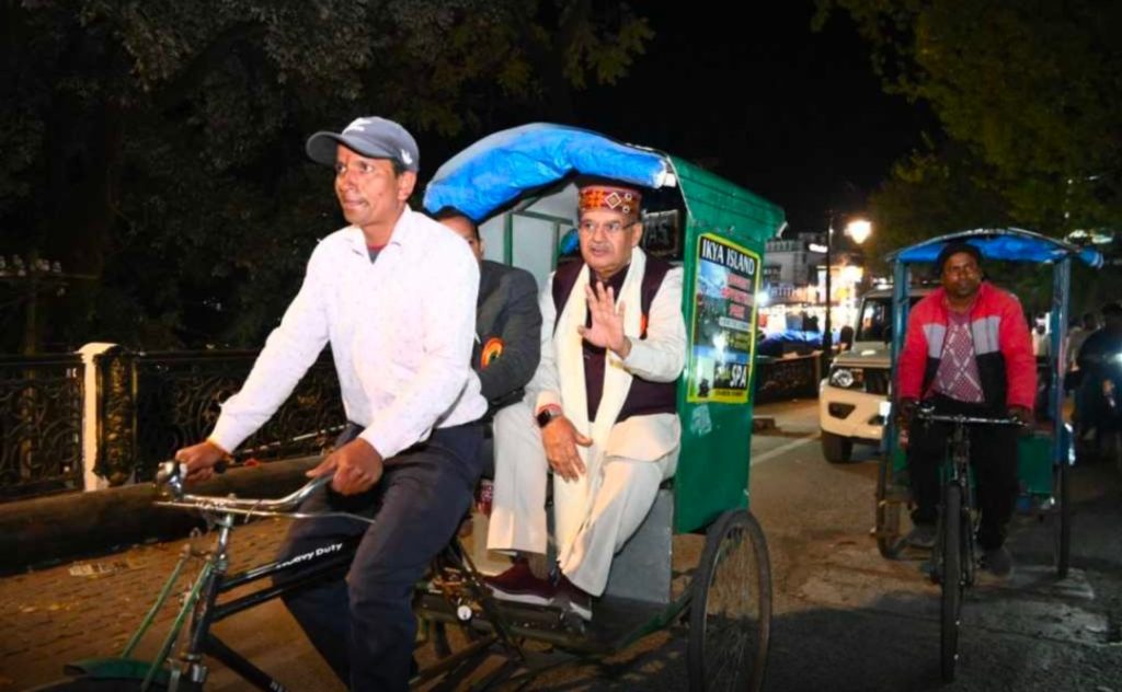 कैबिनेट मंत्री गणेश जोशी ने मसूरी की मॉल रोड़ पर प्रतिबंधित समय के दौरान रिक्शा पर सवारी कर मॉल रोड़ पर नियमों के पालन करने का दिया संदेश।