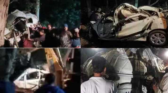Five people of Uttarakhand died in a road accident, four people are seriously injuredFive people of Uttarakhand died in a road accident, four people are seriously injuredइस खबर को शेयर करेंLatest posts by Sapna Rani (see all)देहरादून। उत्तर प्रदेश के पीलीभीत में एक बड़ा सड़क हादसा हुआ है, जिसमें पांच लोगों की मौत हो गई और चार लोग गंभीर रूप से घायल हो गए। यह हादसा पीलीभीत-टनकपुर हाईवे पर न्यूरिया थाने के पास रात करीब 12 बजे हुआ। जानकारी के अनुसार, उत्तराखंड के खटीमा निवासी लोग एक शादी समारोह में शामिल होने के बाद वापस लौट रहे थे। वे एर्टिगा कार में सवार थे, जिसमें कुल 11 लोग थे। जैसे ही उनकी कार न्यूरिया थाने के पास पहुंची, वह अचानक अनियंत्रित हो गई और पेड़ से टकराने के बाद खाई में पलट गई।हादसे के बाद कार बुरी तरह क्षतिग्रस्त हो गई और उसमें फंसे लोगों को निकालने के लिए पुलिस को जेसीबी की मदद लेनी पड़ी। कार में सवार पांच लोगों की मौके पर ही मौत हो गई, जबकि चार लोग गंभीर रूप से घायल हो गए। घायलों को इलाज के लिए अस्पताल भेजा गया, जहां उनकी हालत गंभीर बताई जा रही है। मृतकों में शरीफ अहमद (50), बाबुद्दीन (60), मुन्नी (65), कार ड्राइवर (35), और राकिब (10) शामिल हैं। घायल व्यक्तियों में मंजूर अहमद (65), गुलाम अहमद (8), रईस अहमद (45), अमजदी (55) और जाफरी बेगम (60) शामिल हैं।यह लोग उत्तराखंड के खटीमा क्षेत्र के जमौर गांव और आसपास के इलाकों के रहने वाले थे। वे 5 दिसंबर को पीलीभीत में एक शादी समारोह में शामिल होने आए थे और 6 दिसंबर की रात को अपनी वापसी कर रहे थे।शादी के बाद हुए वालीमे की दावत के दौरान, दुल्हन पक्ष के लोग पीलीभीत से वापस खटीमा लौट रहे थे। तभी हादसा हो गया। कार जैसे ही शाने गुल मैरिज हॉल के पास पहुंची, वह अनियंत्रित हो गई और पेड़ से टकराने के बाद खाई में पलट गई। हादसे में पेड़ भी टूटकर कार पर गिर गया।हादसे की सूचना मिलते ही पुलिस और स्थानीय लोग मौके पर पहुंचे और घायलों को बाहर निकालने की कोशिश की। बाद में पीलीभीत के एसपी अविनाश पांडे भी अस्पताल पहुंचे और घायलों का इलाज सुनिश्चित किया। इस दुखद घटना के बाद मृतकों के परिवारों में कोहराम मच गया है