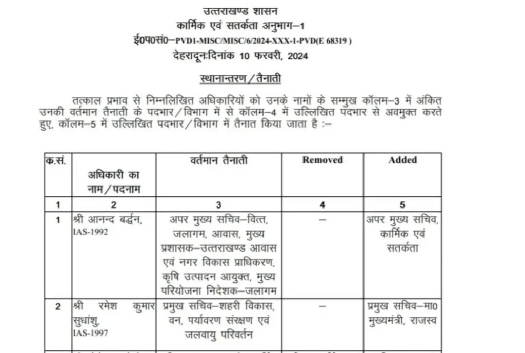 IAS आनन्द वर्धन को अपर मुख्य सचिव कार्मिक व सतर्कता का अतिरिक्त प्रभार,