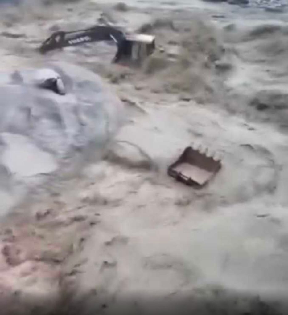 टिहरी :-बूढ़ाकेदार क्षेत्र में भारी बारिश का कहर,धर्मगंगा ने दिखाया रौद्र रूप, पौकलैंड मशीन नदी में बही