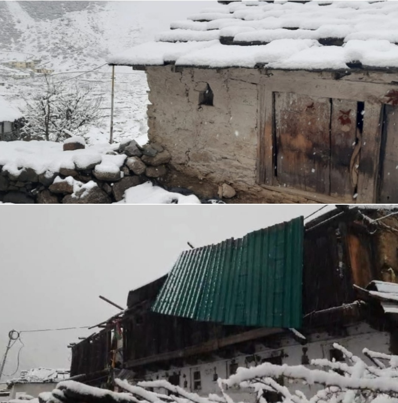 सीमांत जनपद चमोली के नीती घाटी के दूरस्थ गांव द्रोणागिरी में भारी बर्फबारी व बर्फीली तूफान से कई मवेशियों के घरों को भारी नुकसानजनपद चमोली के उच्च हिमालय क्षेत्रों में तीन चार दिनों से लगातार बर्फबारी व तेज हवाएं चल रही है जिससे विकासखंड जोशीमठ के सबसे दूरस्थ गांव द्रोणागिरी में कई मकानों की छतें बर्फीली हवा से उड़ गई है। तथा गांव के कई घरों को नुकसान पहुंचा है। बीते शाम से भी यहां पर लगातार बर्फबारी हो रही थी। सुबह तक लगभग एक से दो फीट के बीच बर्फ जम गई थी। बता दें कि आजकल इस क्षेत्र के लोग अपने शीतकालीन प्रवास जनपद चमोली के मैदानी भागों में निवास करते है। पिछले तीन चार दिन से लगातार खराब मौसम के कारण गांव वाले अपने मूल गांव के घरों का जायजा लेने गए तो वहां पर पहुंच कर देखा कि कई घरों के छते बर्फीली हवाएं से उड़ी हुई है। साथ ही साथ द्रोणागिरी पहुंचने का एक मात्र पैदल मार्ग भी कई जगह पर अत्यधिक बर्फबारी के कारण क्षतिग्रस्त हुआ है। जिसकी सूचना आज सुबह कागा प्रधान व जिला महामंत्री प्रधान संघ चमोली पुष्कर सिंह राणा ने जिलाधिकारी चमोली हिमांशु खुराना को दूरभाष के माध्यम से दे दी है।कागा गरपक के प्रधान पुष्कर सिंह राणा ने बताया और कि मई प्रथम सप्ताह के आस पास गांव वाले शीतकालीन प्रवास से अपने मूल गांव की ओर लौटने वाले है। बर्फबारी के कारण जहां जहां भी पैदल मार्ग क्षतिग्रस्त हो रखे है उनको संबंधित विभाग से ठीक करवाया जाय। और जिन परिवारों के घरों को नुकसान पहुंचा है उनको उचित मुवावजा का प्रावधान किया जाय।जो ग्रामीण अभी अपने घरों का जायजा लेने द्रोणागिरी पहुंचे है उनमें श्री दीवान सिंह रावत,बाग सिंह कुंवर व उदय सिंह रावत हैं।
