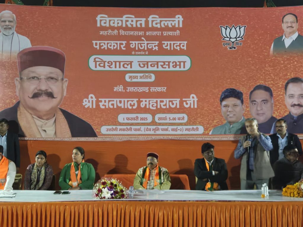 उक्त बात प्रदेश के पर्यटन, लोक निर्माण, सिंचाई, पंचायतीराज, ग्रामीण निर्माण, जलागम, धर्मस्व एवं संस्कृति मंत्री सतपाल महाराज ने महरौली विधानसभा क्षेत्र से भाजपा प्रत्याशी राजेन्द्र यादव के समर्थन में देवभूमि पार्क में आयोजित चुनावी सभा को सम्बोधित करते हुए कही। उन्होंने कहा कि पिछले 10 वर्षों से दिल्ली में केजरीवाल की लूट और झूठ की सरकार चल रही है। आम आदमी पार्टी की सरकार ने दिल्ली की जनता को आयुष्मान भारत योजना के तहत मिलने वाली पांच लाख रुपए तक की फ्री इलाज की सुविधा से दूर रखा है।