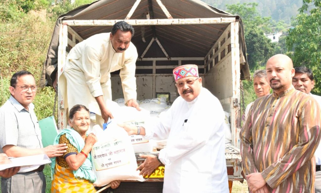 पौड़ी। विधानसभा क्षेत्र चौबट्टाखाल के तहसील बीरोंखाल के अन्तर्गत ग्राम सुकई में गत माह आयी आपदा से प्रभावित परिवारों को क्षेत्रीय विधायक प्रदेश के कैबिनेट मंत्री सतपाल महाराज और उनके पुत्र भाजपा युवा मोर्चा प्रदेश कार्यकारिणी सदस्य सुयश रावत ने राहत सामग्री का वितरण किया।
