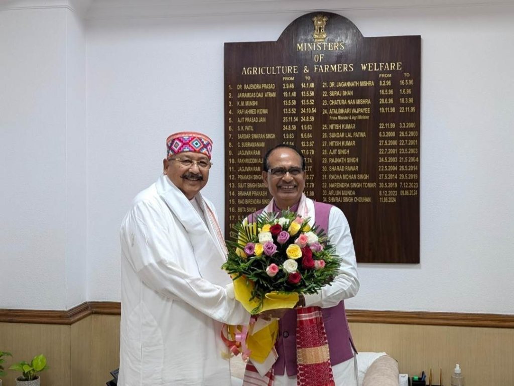 देहरादून। प्रदेश के कैबिनेट मंत्री सतपाल महाराज ने केंद्रीय कृषि एवं किसान कल्याण मंत्री शिवराज सिंह चौहान से कृषि भवन, नई दिल्ली स्थित उनके कार्यालय पर शिष्टाचार भेंट कर देश में सुपर रिच फूड उगाये जाने के साथ-साथ उत्तराखंड में किसानों की आय बढ़ाने के लिए टीक और सफेद चंदन आदि उगाने के लिए उनको डी नोटिफाई करने का अनुरोध किया।
