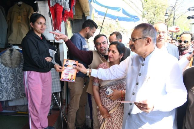 Mussoorie, 13 Apr: Cabinet Minister Ganesh Joshi conducted a public outreach campaign today on the Mall Road in Mussoorie, interacting with traders, local residents, and tourists, and inviting them to attend the programme of Prime Minister Narendra Modi during his visit to Dehradun on 14 April. He personally met people and urged them to participate in large numbers in the public gathering. He also gathered feedback from the public regarding various development schemes being run by the central and state governments.