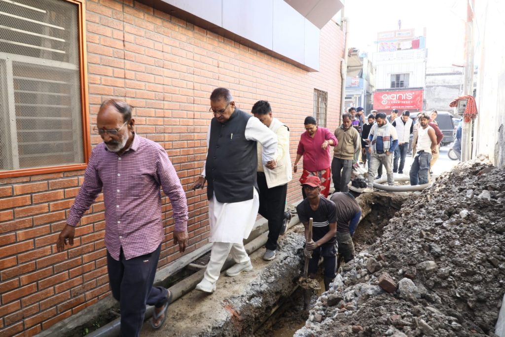 DEHRADUN, 21 Feb: Cabinet Minister Ganesh Joshi on Saturday inspected the ongoing sewer line and drinking water pipeline construction works in Saiyed Mohalla, located in Kishan Nagar, Ward 12 of Dehradun. During the inspection, he directed the concerned officials to ensure that there is no compromise on the quality of construction and that the work is completed within the stipulated timeframe.