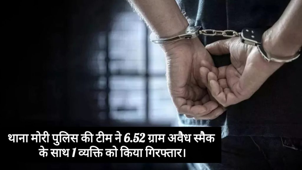 थानाध्यक्ष मोरी, मोहन सिंह कठैत के नेतृत्व में थाना मोरी पुलिस ने कल 11 दिसम्बर 2025 की सायं को मोरी, जे0पी0 पुल से विजयपाल उर्फ़ सीरिया नाम के एक व्यक्ति को अवैध स्मैक (हेरोइन) के साथ गिरफ्तार किया । जिसके कब्जे से 6.52 ग्राम स्मैक बरामद की गई व्यक्ति के विरुद्ध थाना मोरी में *NDPS Act की धारा 8/21* के तहत मुकदमा दर्ज किया गया है। मामले में अग्रिम विधिक कार्यवाही जारी है। अभियुक्त के आपराधिक इतिहास की जानकारी जुटाई जा रही है।