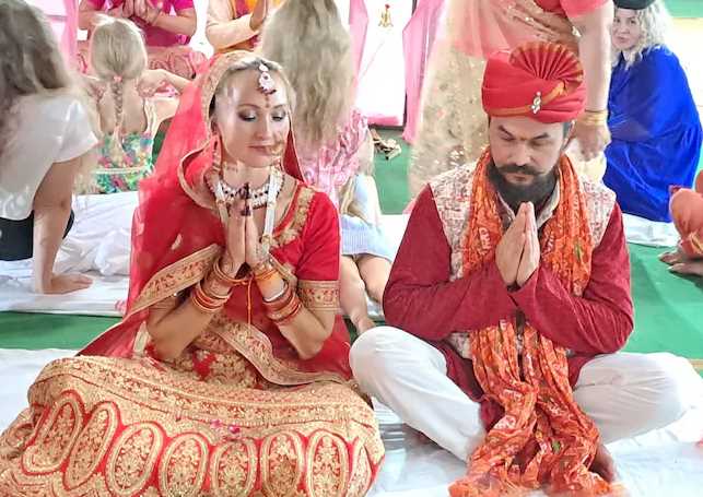 Latest posts by Sapna Rani (see all)हरिद्वार ; उत्तराखंड के हरिद्वार के एक आश्रम में रूस से आए जोड़े ने भारतीय विधि-विधान के साथ शादी की. अब उनकी इस शादी की काफी चर्चा हो रही है. सोशल मीडिया पर इस अनोखी शादी के फोटो और वीडियो जमकर वायरल हो रहे हैं. हरिद्वार के भूपतवाला स्थित अखंड परमधाम आश्रम में विदेशी नागरिक देसी धुनों पर नाचे, थिरके और उत्साह से लबरेज नजर आए. मौका था 2 जोड़ों की शादी का. हैरानी की बात तो यह थी कि ये दूल्हा और दुल्हन भारतीय नहीं बल्कि ये रूस के नागरिक हैं.