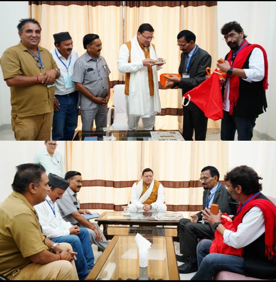 *भराड़ीसैंण में माँ भराड़ी देवी का बनेगा भव्य मंदिर,गैरसैंण (भराड़ीसैंण) में बनेगा पत्रकारों के लिए रेस्टहाउस, मुख्यमंत्री ने की घोषणा*चमोली ( प्रदीप लखेड़ा )मुख्यमंत्री श्री पुष्कर सिंह धामी से गुरुवार को गैरसैंण (भराड़ीसैंण) स्थित मुख्यमंत्री आवास में जनपद चमोली के विभिन्न पत्रकार संगठनों के प्रतिनिधियों, वरिष्ठ पत्रकारों के शिष्टमंडल ने शिष्टाचार भेंट की।इस दौरान मुख्यमंत्री ने पत्रकारों से विभिन्न विषयों पर चर्चा की। मुख्यमंत्री श्री धामी ने पत्रकारों की माँग पर गैरसैंण (भराड़ीसैंण) में पत्रकारों के लिये रेस्टहाउस बनाए जाने की घोषणा की। मुख्यमंत्री ने महानिदेशक सूचना को निर्देशित किया कि इस संबंध में तत्काल कार्ययोजना तैयार किया जाए।मुख्यमंत्री ने सचिव संस्कृति एवं धर्मस्व श्री हरिचन्द्र सेमवाल को निर्देश दिए कि गैरसैंण (भराड़ीसैंण) में माँ भराड़ी देवी का भव्य मंदिर बनाया जाए एवं इसके लिए स्थानीय जनता एवं हितधारक तीर्थ पुरोहितों के सुझाव लिए जाएं।मुख्यमंत्री ने कहा कि सरकार की प्राथमिकता है कि गैरसैंण का सर्वांगीण विकास हो इसके लिए गैरसैंण (भराड़ीसैंण) भवन में सालभर विभिन्न प्रशिक्षण, वर्कशॉप, सेमिनार कार्यक्रम आयोजित किए जायेंगे। उन्होंने कहा कि गैरसैंण में सालभर चलने वाले कार्यक्रमों हेतु सचिव स्तर के अधिकारी को यह ज़िम्मेदारी दी जाएगी। मुख्यमंत्री ने कहा कि वर्षभर संचालित होने वाले विभिन्न कार्यक्रमों से स्थानीय अर्थव्यवस्था को भी मज़बूती मिलेगी।मुख्यमंत्री ने कहा कि गैरसैंण को योग, ध्यान, अध्यात्म के केंद्र के रूप में भी विकसित किया जाएगा। उन्होंने कहा कि भराड़ीसैंण में पुलिस आवास का निर्माण कार्य गतिमान है।इस अवसर पर महानिदेशक सूचना श्री बंशीधर तिवारी, चमोली जिला प्रेस क्लब अध्यक्ष देवेन्द्र रावत, वरिष्ठ पत्रकार क्रांति भट्ट, रजपाल बिष्ट, दिनेश थपलियाल जगदीश पोखरियाल आदि उपस्थित रहे।