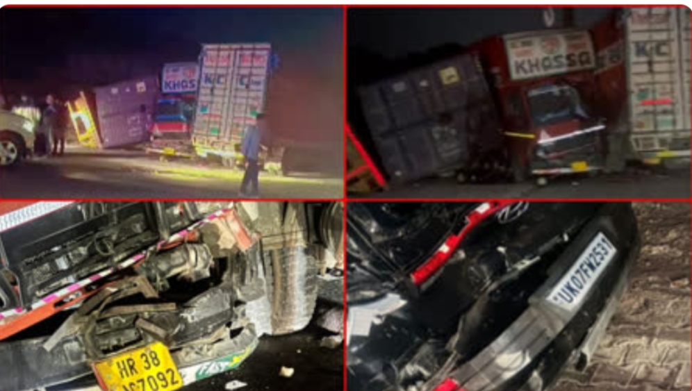 देहरादून : एक के बाद एक भीषण सड़क हादसों से सहमे देहरादून में फिर से एक भीषण हादसा हुआ ।बताया जा रहा है कि दिल्ली हाइवे आशारोड़ी चेक पोस्ट ( थाना क्लेमेटाउन )पर सेल्स टैक्स की टीम द्वारा चैकिंग की जा रही थी , जहाँ टीम से रुकने का इशारा मिलने पर यूटीलिटी वाहन चालक ने तुरंत ब्रेक लगा दिया , जिससे पीछे आरहे तेज गति के वाहन संभल ना सके और एक दूसरे से टकराते गये ।