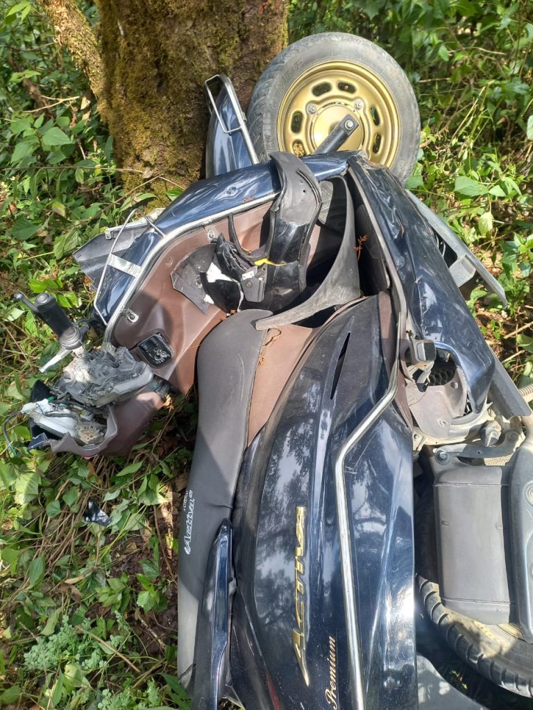 एक्सीडेंट कितना खतरनाक है इसका अंदाजा स्कूटी की स्थिति देख लगायी जा सकती है ।सभी से निवेदन है कि पहाड़ी रास्तों में वाहन चलाते समय गति नियंत्रण में रखें और दुपहिया वाहनों में दोनों सवारी हेल्मेट पहने ।नॉनिहालो को वाहन देने से पहले यातायात व सुरक्षा नियमों की जानकारी अवश्यक दें ।