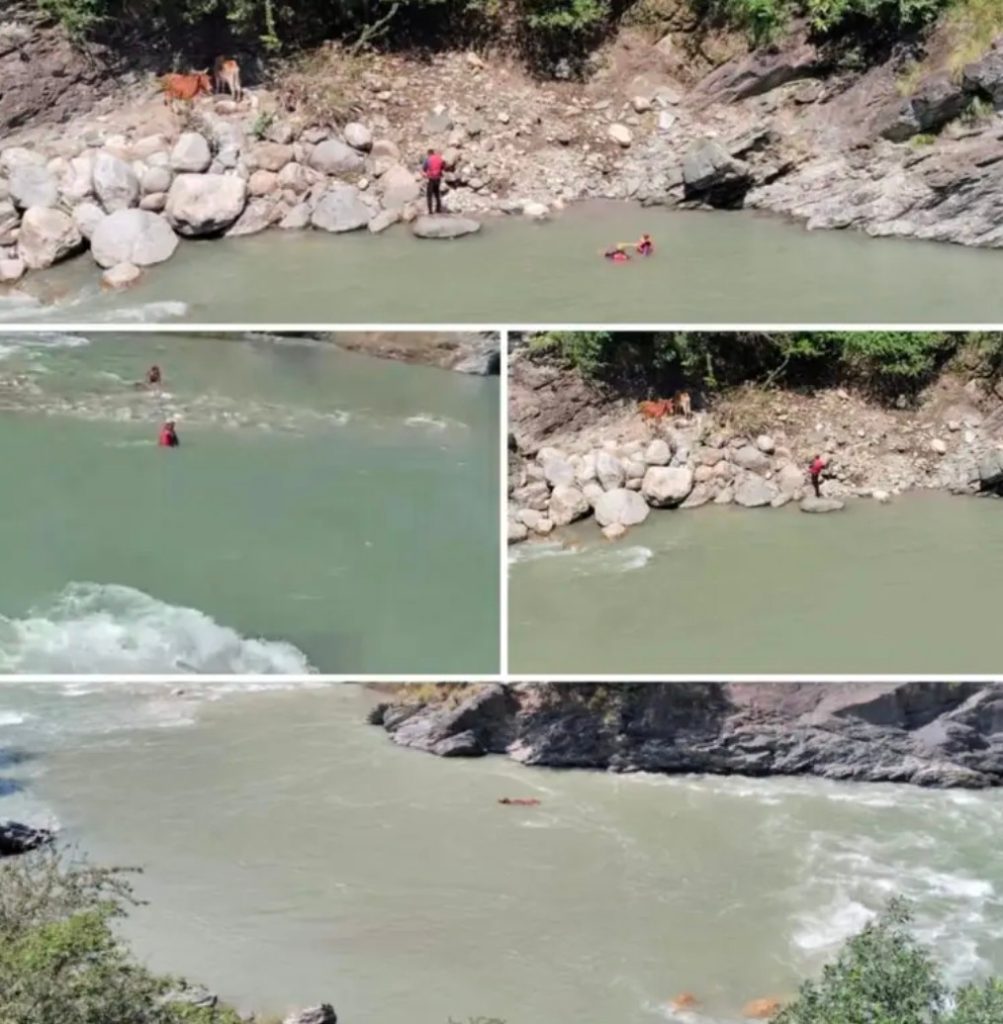 यमुनानदी के तेज बहाव के कारण फंसे पशुओं को बचाने के लिए देवदूत बनकर सबसे पहले आई फायर बिग्रेड बड़कोट की टीम का एक सदस्य रेस्क्यू के दौरान उक्त स्थान पर भंवर में फंसने के बाद मरते–मरते बचा। और जहां बैल था वहीं फंस गया। जिसके बाद एसडीआरएफ गंगनानी की टीम के सदस्यों द्वारा जवान को निकालने के लिए रेस्क्यू अभियान चलाया गया, लेकिन अबकी बार एसडीआरएफ का जवान भंवर की जद में आ गया और ओ भी मरते–मरते बच गया। उसके बाद अन्य साथियों ने सभी का सफल रेस्क्यू कर लिया है। टीम के सभी सदस्य सकुशल हैं।