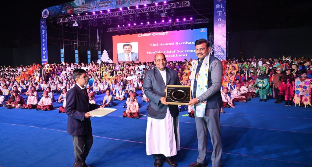 Dehradun, 20 Nov: The first day celebrations of the 91st Annual Day of St Joseph’s Academy was held on 19 November. The programme opened with a prayer and the lighting of the ceremonial lamp, setting a reverent and uplifting tone for the evening. The Chief Guest on the occasion was Anand Bardhan, Chief Secretary of Uttarakhand.Principal Bro Joseph M Joseph, with Junior School Coordinator Vimi Sondhi and Kindergarten Coordinator S Lepcha, presented the Annual Report, highlighting the year’s achievements, new initiatives, and the collective progress of the Junior School. Their combined efforts showcased the school’s commitment to nurturing confident, creative, and well-rounded young learners.The students then enthralled the audience with the musical, “Into the Enchanted Lands”, showcasing expressive performances, vibrant energy, and seamless teamwork.Addressing the gathering, the Chief Guest lauded the Academy for providing every child the opportunity to shine and emphasised the importance of fostering creativity, character, and values from an early age.Principal Bro Joseph, in his Vote of Thanks, expressed heartfelt gratitude to the Almighty, the Chief Guest, the Patrician Brothers, coordinators, staff, and students.The programme concluded with the School Song and the National Anthem, marking a dignified close to the first day of celebrations.