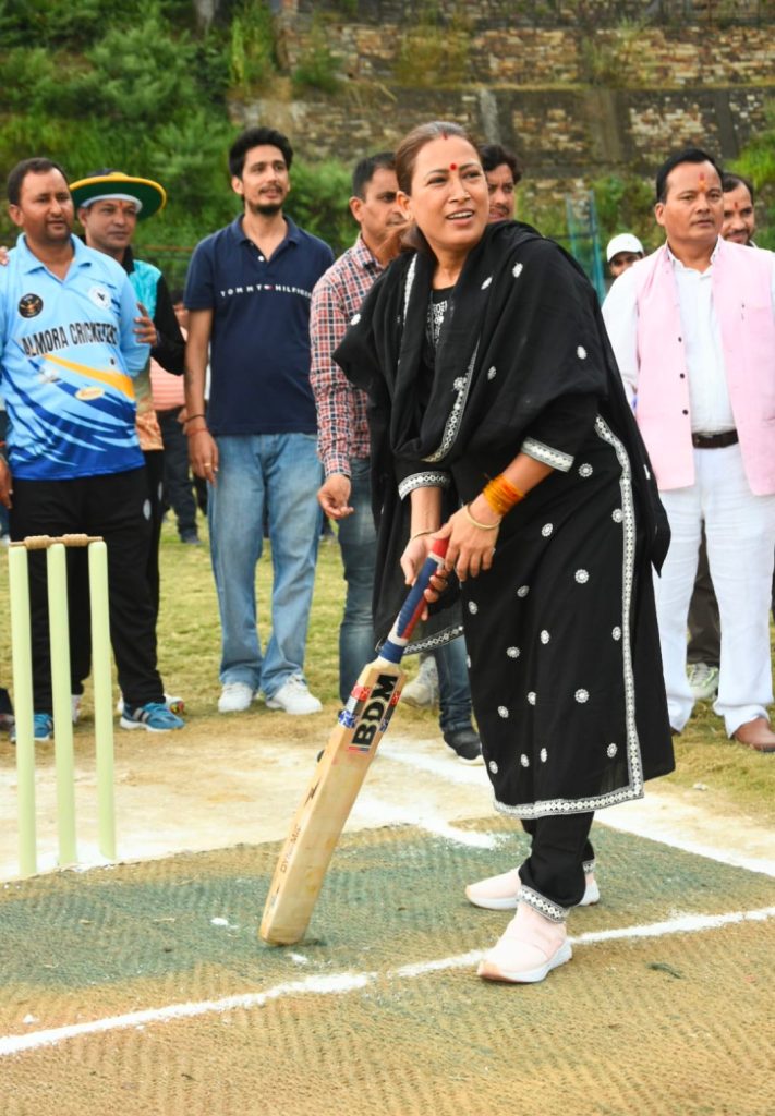 *अल्मोड़ा :* आज खेल एवं युवा कल्याण मंत्री रेखा आर्या अल्मोड़ा के हेमवंती नंदन बहुगुणा स्पोर्ट्स स्टेडियम पहुंची जंहा विक्टोरिया क्रिकेट क्लब के सदस्यों ने कैबिनेट मंत्री का पुष्पगुछ भेंट कर स्वागत किया । खेल मंत्री रेखा आर्य ने हेमवंती नंदन बहुगुणा जी की तस्वीर पर पुष्प अर्पित कर बहुगुणा जी को नमन किया । इस अवसर पर मंत्री आर्या ने विक्टोरिया प्रीमियर लीग की ट्रॉफी का अनावरण कर क्रिकेट टूर्नामेंट का उद्घाटन किया ।