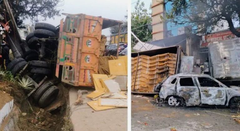 Dehradun fire incidentDehradun truck accident देहरादून के मोहब्बेवाला चौक पर ट्रक कार पर पलटा, लगी भीषण आग; बड़ा हादसा टला – myuttarakhandnews.com pooja SinghFebruary 18, 2026February 18, 20260देहरादून। राजधानी के मोहब्बेवाला चौक पर बुधवार सुबह बड़ा हादसा उस समय टल गया, जब एक अनियंत्रित ट्रक कार के…