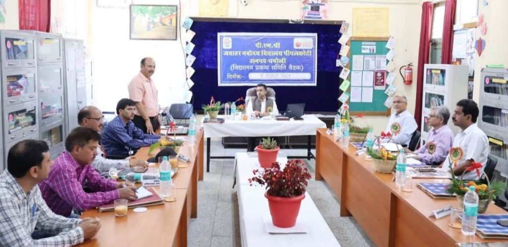 *डीएम की अध्यक्षता में हुई जवाहर नवोदय विद्यालय पीपलकोटी की प्रबंधन समिति की बैठक*चमोली ( प्रदीप लखेड़ा )जिलाधिकारी हिमांशु खुराना ने शनिवार को जवाहर नवोदय विद्यालय पीपलकोटी में विद्यालय प्रबंधन एवं सलाहकार समिति की बैठक ली। उन्होंने विद्यालय संचालन में आ रही समस्याओं का निराकरण करते हुए छात्र-छात्राओं को कैरियर काउंसलिंग के साथ बेहतर सुविधा उपलब्ध कराने के निर्देश दिए। इस दौरान जिलाधिकारी ने सदस्यों के साथ विद्यालय परिसर का स्थलीय निरीक्षण कर व्यवस्थाओं का जायजा भी लिया।जिलाधिकारी ने निर्देश दिए कि विद्यालय में पठन-पाठन के अलावा बच्चों को विभिन्न क्षेत्र की गतिविधियों की जानकारी देकर उनकी कैरियर काउंसलिंग की जाए। ताकि यहां से निकलने के बाद बच्चे अपनी रूचि के अनुसार अपनी प्रतिभा को लेकर आगे बढ सके। उन्होंने मुख्य चिकित्सा अधिकारी को निर्देशित किया कि प्रत्येक बुधवार को विद्यालय परिसर में कैंप लगाकर बच्चों की स्वास्थ्य जांच कराई जाए। जिलाधिकारी ने कहा कि विद्यालय में छात्रावास के पीछे भूस्खलन क्षेत्र के उपचार के लिए वन, सिंचाई एवं पशुपालन अधिकारियों के माध्यम से संयुक्त निरीक्षण कराया जाएगा। उन्होंने निर्देश दिए कि विद्यालय में खेल मैदान विस्तारीकरण और प्रार्थना स्थल पर टिन शेड निर्माण हेतु प्रस्ताव तैयार किया जाए। लोक निर्माण विभाग को शैक्षणिक भवन के समीप मुख्य सड़क का सुधारीकरण और एनएचआईडीएस के माध्यम से विद्यालय के दोनों गेट के समीप सड़क किनारे साइन बोर्ड लगवाने के निर्देश दिए। विद्यालय के कूडा निस्तारण के संबध में जिलाधिकारी ने निर्देश दिए कि पीपलकोटी नगर पंचायत के माध्यम से कार्यशाला आयोजित कर बच्चों को कूड़े का सोर्स सेग्रीगेशन की जानकारी दी जाए और सूखे कूड़े का नगर पंचायत के माध्यम से निस्तारित करें। बैठक में विद्यालय की अन्य समस्याओं पर भी चर्चा करते हुए उनका समाधान किया गया। जिलाधिकारी ने विद्यालय परिसर कक्षा कक्षों, आर्ट रूम, भौतिक विज्ञान लैब, गणित, भाषा व कम्प्यूटर लैब और लाइब्रेरी सहित हॉस्टल में बच्चों के आवासीय कक्षों का निरीक्षण भी किया और विद्यालय की व्यवस्थाओं को और बेहतर बनाने के लिए सुझाव लिए। इस दौरान जिलाधिकारी ने मेधावी छात्रों को सम्मानित भी किया।विद्यालय के प्रधानाचार्य ने समिति के सभी सदस्यों का आभार व्यक्त करते हुए विद्यालय की गतिविधियों की रिपोर्ट प्रस्तुत की। उन्होंने बताया कि वर्तमान में विद्यालय में 193 छात्र व 133 छात्राएं सहित कुल 326 विद्यार्थी अध्ययनरत है। विगत वर्ष में कक्षा 10 और कक्षा 12 का परीक्षा परिणाम शत प्रतिशत रहा। उन्होंने मुख्य शिक्षा अधिकारी से जनपद के कक्षा 5वीं में पढ़ने वाले बच्चों को नवोदय 