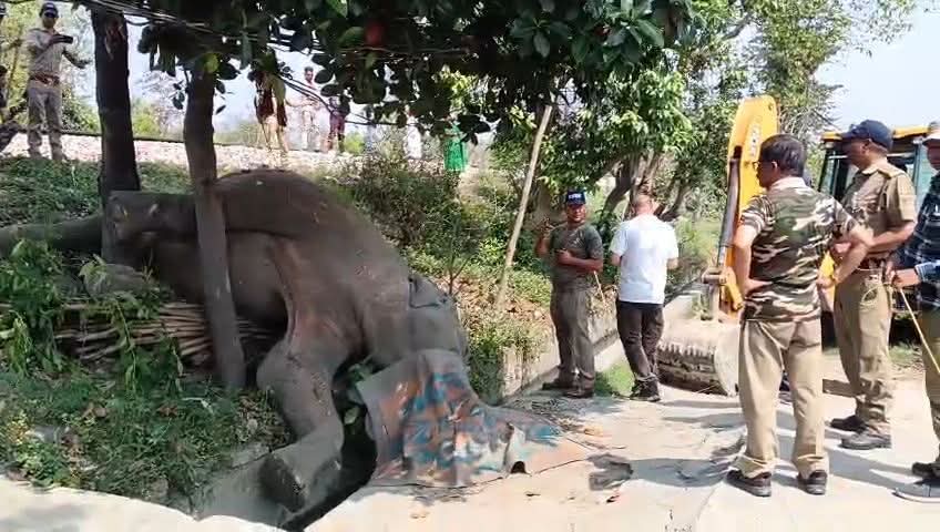 हाथी की मौत के बाद से वन विभाग में हड़कंप मच गया , मौके पर पहुंची वन विभाग की टीम घटना के कारण की जांच करेगी ।