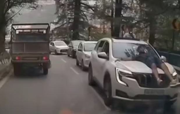 हिमाचल के शिमला में टूरिस्टः चलती गाड़ी के बोनट पर सवार…बस चंद रुपये के चालान से बच जाएगा?#HimachalPradesh @himachalpolice #Traffic pic.twitter.com/u1vjdONUoE— Vinod Katwal (@Katwal_Vinod) June 28, 2025