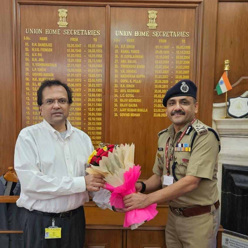 देहरादून , उत्तराखंड के पुलिस महानिदेशक (DGP) श्री अभिनव कुमार ने नई दिल्ली में केंद्रीय गृह सचिव श्री गोविंद मोहन* से शिष्टाचार मुलाकात की। इस मुलाकात में *राज्य की कानून व्यवस्था, सुरक्षा परिदृश्य, महिला सुरक्षा, और पुलिस सुधारों से संबंधित महत्वपूर्ण मुद्दों पर गहन चर्चा हुई।*भारतीय न्याय संहिता के क्रियान्वन संबंधी चुनौतियों पर चर्चा की गई*