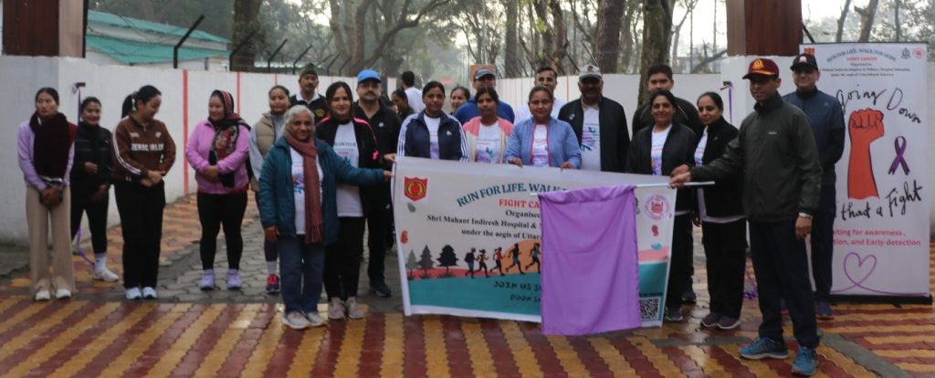 The event was flagged off by the Chief Guests, Brigadier Prafull Mohan, Commandant, Military Hospital Dehradun, and Dr Pankaj, Head of Oncology Surgery, Shri Mahant Indiresh Hospital, who emphasised collective responsibility in combating cancer through awareness, prevention, and early intervention.