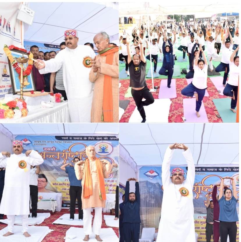 देहरादून:-अल्मोड़ा ,मुख्यमंत्री पुष्कर सिंह धामी ने जहां अंतरराष्ट्रीय योग दिवस पर जनपद पिथौरागढ़ के सुदूरवर्ती क्षेत्र पार्वती कुंड,आदि कैलाश में योगाभ्यास किया तो वहीं दूसरी ओर प्रदेश के वरिष्ठ कैबिनेट मंत्री सतपाल महाराज ने अल्मोड़ा, नगर पालिका के समीप स्थित रामलीला मैदान में योग दिवस के कार्यक्रम में शामिल होकर प्रदेशवासियों को योग दिवस की शुभकामनाएं देते हुए जीवन में योग की महत्वत्ता की जानकारी देने के साथ-साथ स्वंय भी योगाभ्यास किया।